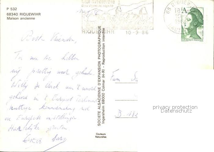 12232801 carte postale Riquewihr Haut Rhin Maison ancienne postalisch gelaufen Erhaltung siehe scans KatCode: 11170068568277