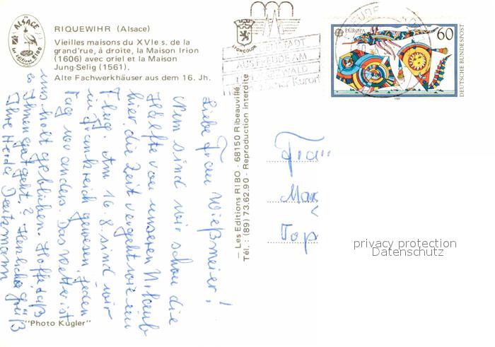 12832069 carte postale Riquewihr Haut Rhin Maison Jung-Selig Gasse mit Fachwerkhaeusern postalisch gelaufen Erhaltung siehe scans [LiesaD40] KatCode: 11170068568277