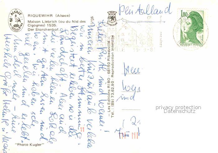 12839381 carte postale Riquewihr Haut Rhin Maison Liebrich Storchenhof Restaurant postalisch gelaufen Erhaltung siehe scans [FriedD77] KatCode: 11170068568277