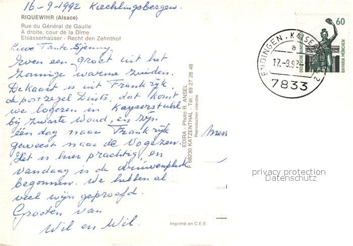 12932373 carte postale Riquewihr Haut Rhin Rue du General de Gaulle postalisch gelaufen Erhaltung siehe scans [WerneD78] KatCode: 11170068568277