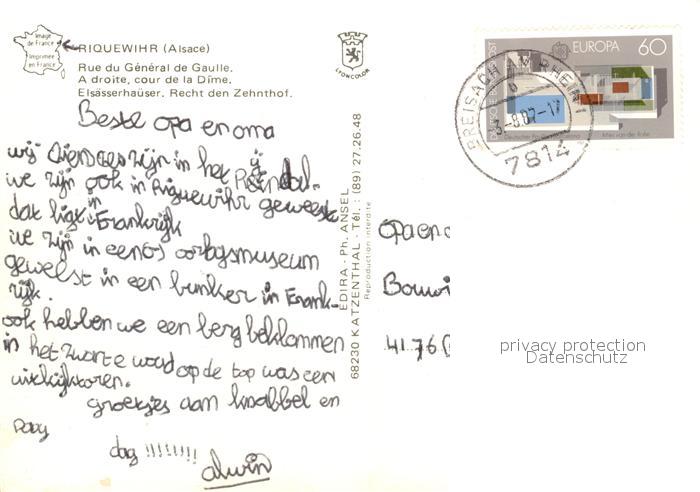 13048874 carte postale Riquewihr Haut Rhin Rue du General du Gaulle postalisch gelaufen Erhaltung siehe scans [KathaD81] KatCode: 11170068568277
