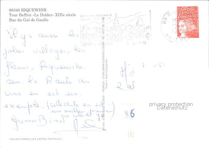 12328922 carte postale Riquewihr Haut Rhin Tour Beffreoi Le Dolder Rue du Gal de Gaulle postalisch gelaufen Erhaltung siehe scans KatCode: 11170068568277