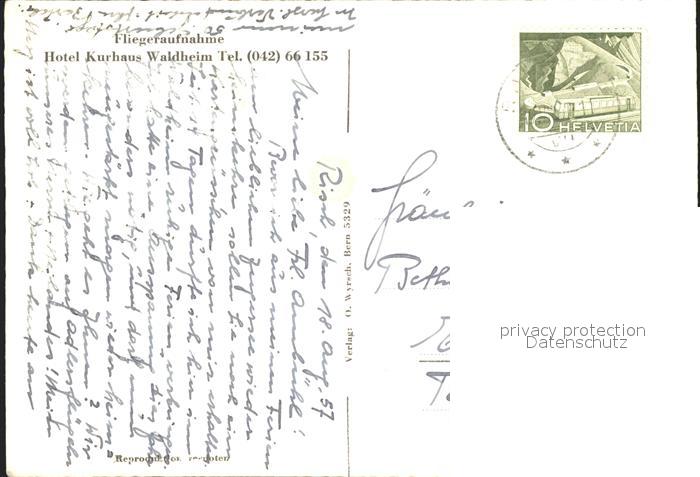11655121 alte Postkarte Risch Hotel Kurhaus Waldheim Fliegeraufnahme postalisch gelaufen KatCode: 11470250855018