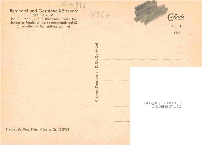 72878851 Rischenau Berghotel Gaststaette Koeterberg Fliegeraufnahme postalisch nicht gelaufen Erhaltung siehe scans [FriedD77] KatCode: 11110005766052