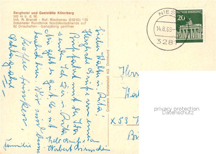 73569277 alte Postkarte Rischenau Berghotel-Gastst?tte K?terberg postalisch gelaufen Erhaltung siehe scans [PaolaD17] KatCode: 11110005766052