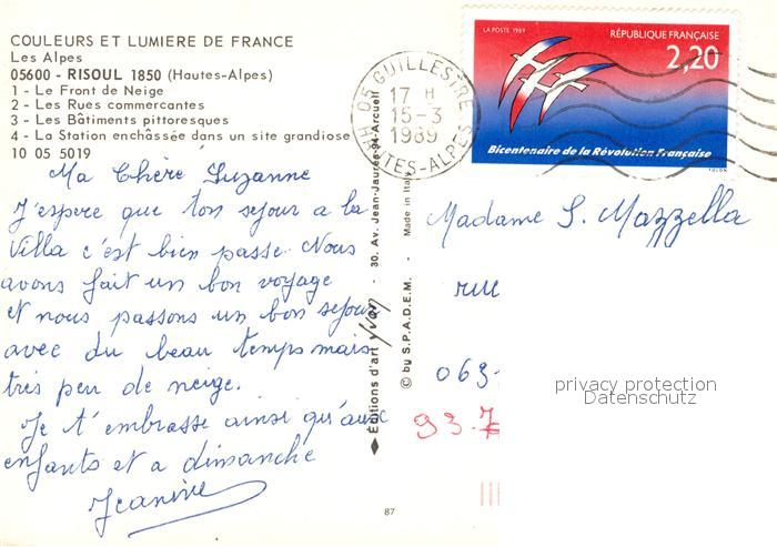 13237459 carte postale Risoul Front de Neige Rues commercantes Bâtiments pittoresques vue panoramique Wintersportplatz Alpen postalisch gelaufen Erhaltung siehe scans [FriedD77] KatCode: 11170005105119
