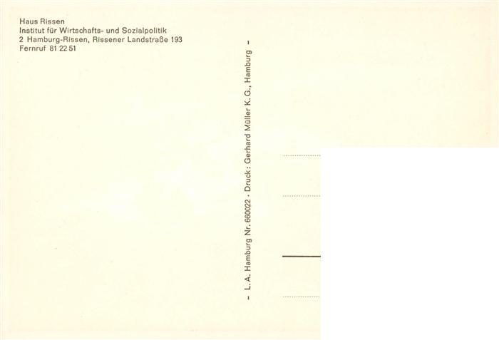 73886113 Rissen Hamburg Haus Rissen Institut fuer Wirtschafts- und Sozialpolitik postalisch nicht gelaufen Fliegeraufnahme Erhaltung siehe scans [FriedD77] KatCode: 11110002000000