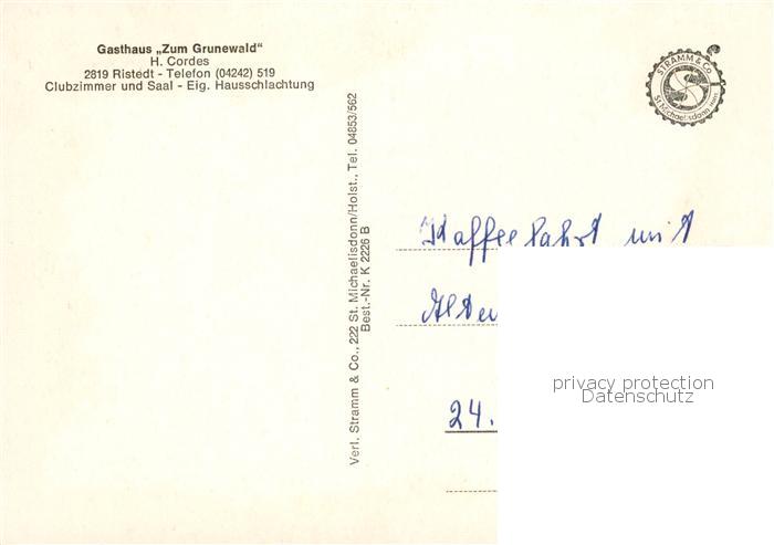 73845178 Ristedt Syke Gasthaus Zum Grunewald Gaststube Festsaal Terrasse postalisch nicht gelaufen Erhaltung siehe scans [WerneD78] KatCode: 11110003251041
