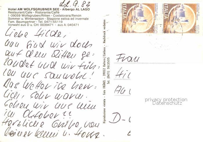 old postcard Ritten Renon Hotel Am Wolfsgrubner See postalisch gelaufen Erhaltung siehe scans [WerneD78]