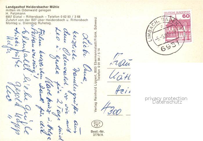 73542846 alte Postkarte Rittersbach Odenwald Landgasthof Heidersbacher Muehle Restaurant Teich postalisch gelaufen Erhaltung siehe scans [FriedD77] KatCode: 11110008225117