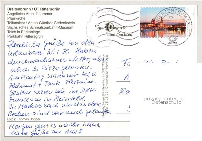 73840109 alte Postkarte Rittersgruen Angelteich Pfarrkirche Panorama Schmalspur Museum Teich Parkbahn Rittersgruen postalisch gelaufen Erhaltung siehe scans [WerneD78] KatCode: 11110014191260