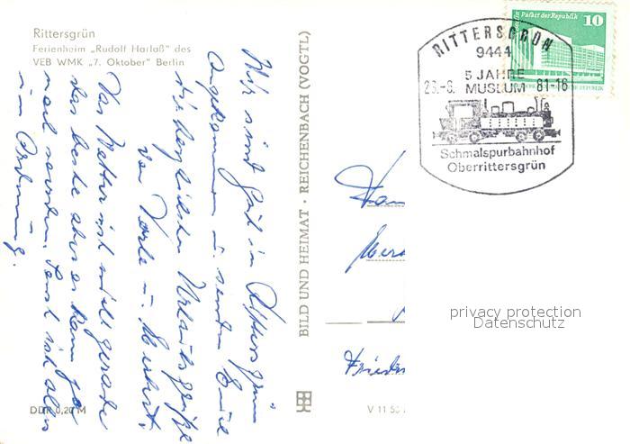 73614255 alte Postkarte Rittersgruen Ferienheim Rudolf Harlass postalisch gelaufen Erhaltung siehe scans [WerneD78] KatCode: 11110014191260