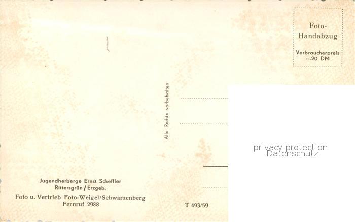 73722372 Rittersgruen Jugendherberge Ernst Scheffler postalisch nicht gelaufen Erhaltung siehe scans [WerneD78] KatCode: 11110014191260