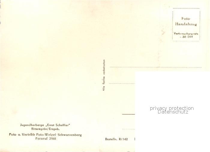73613841 Rittersgruen Jugendherberge Ernst Scheffler postalisch nicht gelaufen Erhaltung siehe scans [FriedD77] KatCode: 11110014191260