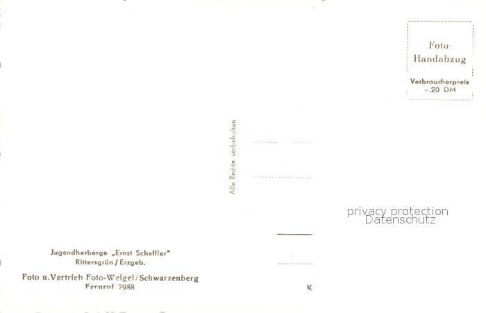 73612872 Rittersgruen Jugendherberge Ernst Scheffler Handabzug postalisch nicht gelaufen Erhaltung siehe scans [FriedD77] KatCode: 11110014191260