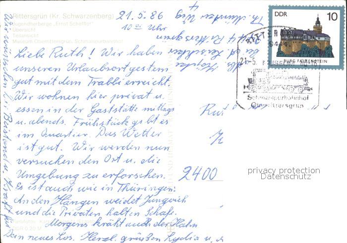 72459766 alte Postkarte Rittersgruen Jugendherberge Ernst Scheffler Panorama Teilansicht Museum Schmalspurbahnhof postalisch gelaufen Erhaltung siehe scans KatCode: 11110014191260