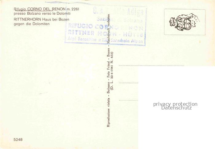 74137557 Rittnerhornhaus Rifigio Corno di Renon 2261m Bolzano IT mit den Dolomiten postalisch nicht gelaufen Erhaltung siehe scans [WerneD78] KatCode: 11240