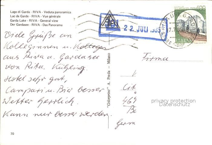 old postcard Riva del Garda postalisch gelaufen Erhaltung siehe scans