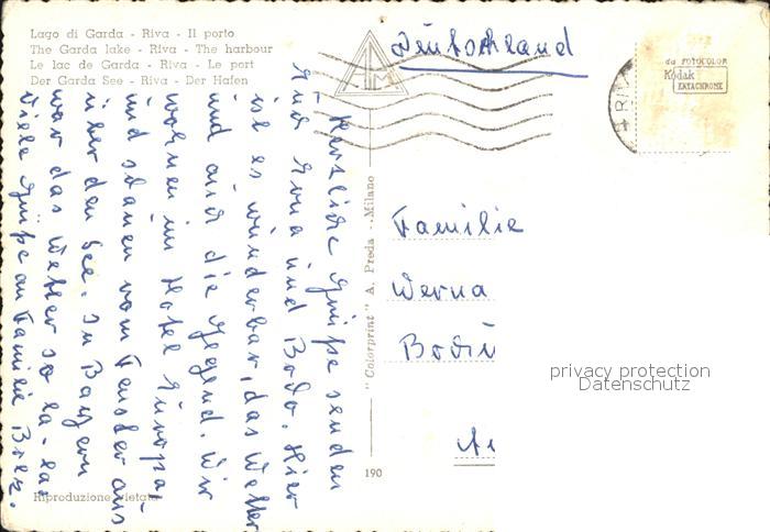 old postcard Riva del Garda Der Hafen postalisch gelaufen Erhaltung siehe scans