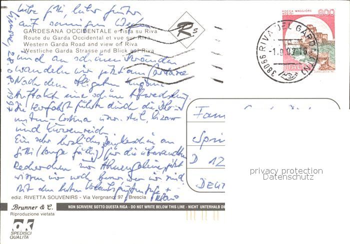 old postcard Riva del Garda Gardesana occidentale e vista su Riva westliche Garda Strasse Blick Riva postalisch gelaufen Erhaltung siehe scans