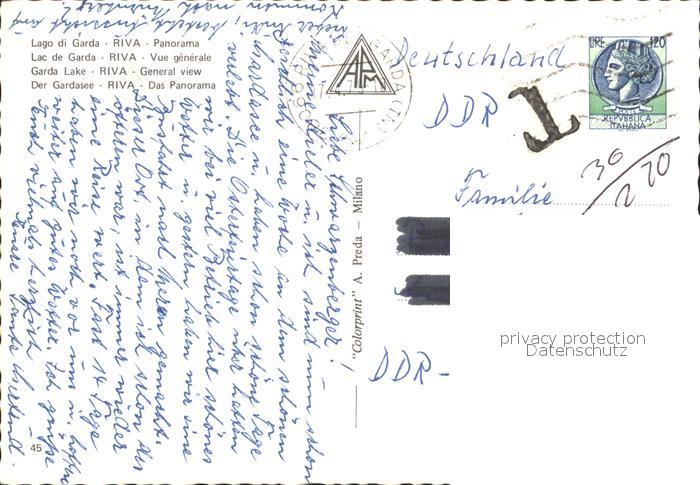 old postcard Riva del Garda Hafen Panorama Alpen postalisch gelaufen Erhaltung siehe scans