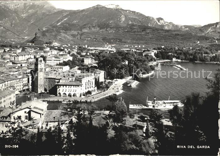 old postcard Riva del Garda Hafenpartie postalisch gelaufen Erhaltung siehe scans