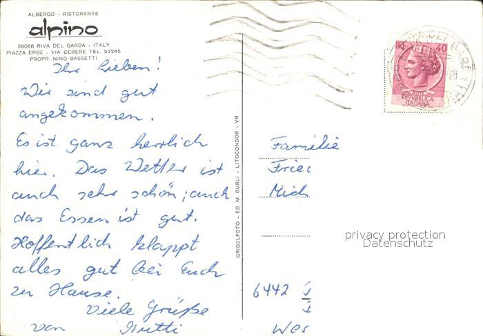 old postcard Riva del Garda Hotel Alpino postalisch gelaufen Erhaltung siehe scans