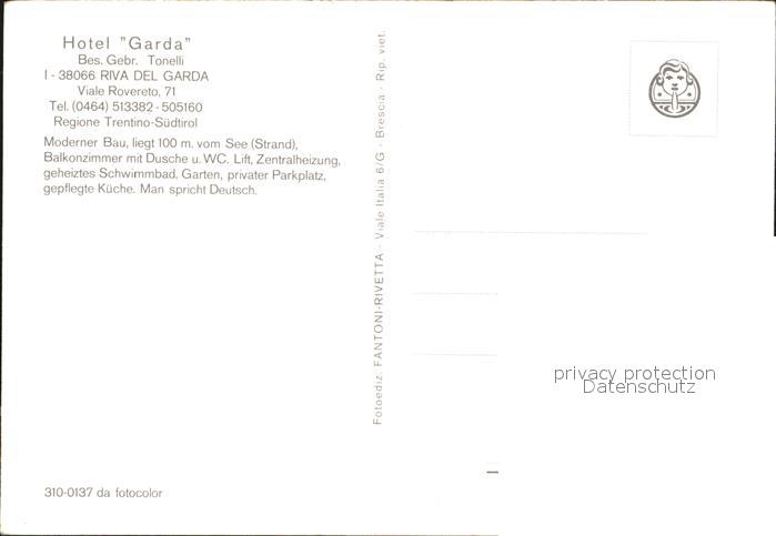 Riva del Garda Hotel Garda Strand postalisch nicht gelaufen Erhaltung siehe scans