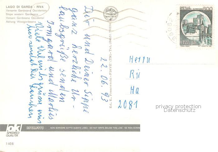 old postcard Riva del Garda IT Abhang Westgardesana postalisch gelaufen Erhaltung siehe scans [FriedD77]