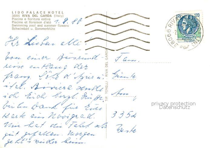 old postcard Riva del Garda IT Piscina e fioritura estiva Hotel postalisch gelaufen Erhaltung siehe scans [FriedD77]