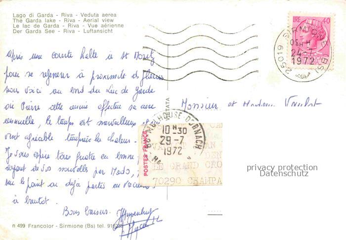 74026769 old postcard Riva del Garda IT Veduta aerea postalisch gelaufen Fliegeraufnahme Erhaltung siehe scans [FriedD77] KatCode: 11240