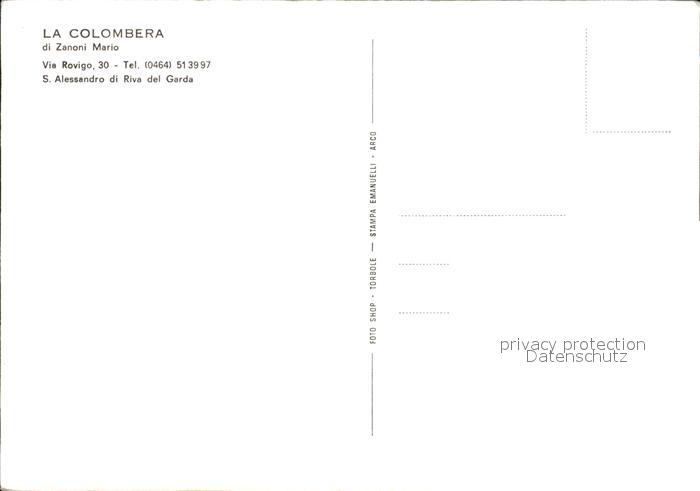 Riva del Garda La Colombera Restaurant postalisch nicht gelaufen Erhaltung siehe scans [LiesaD40]
