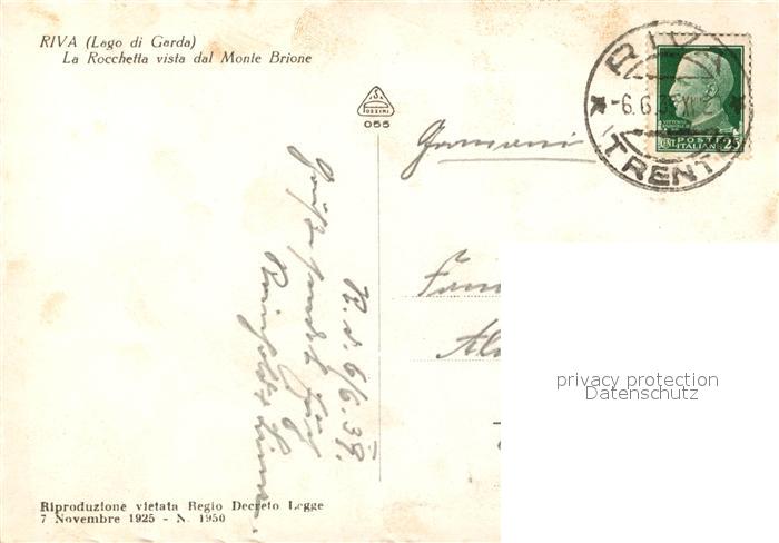 old postcard Riva del Garda La Rochetta vista dal Monte Brione postalisch gelaufen Erhaltung siehe scans [WerneD78]