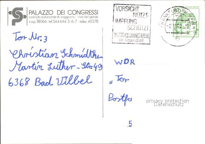 old postcard Riva del Garda Palazzo dei Congressi postalisch gelaufen Erhaltung siehe scans