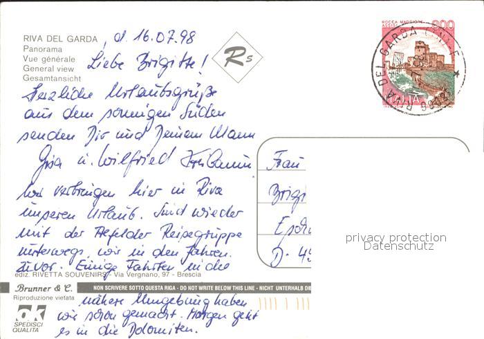 old postcard Riva del Garda Panorama postalisch gelaufen Erhaltung siehe scans