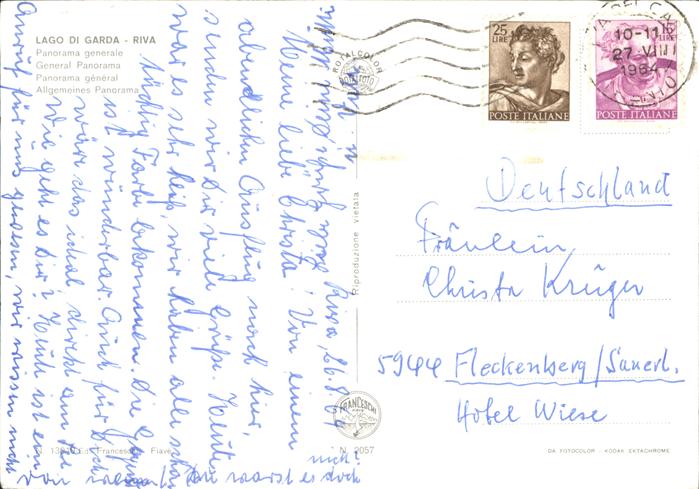 old postcard Riva del Garda Panorama postalisch gelaufen Erhaltung siehe scans