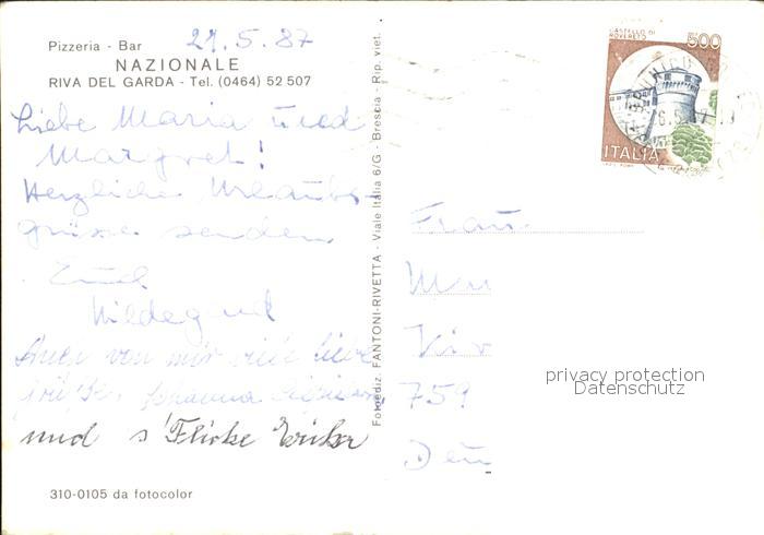 old postcard Riva del Garda Pizzeria Bar Nazionale postalisch gelaufen Erhaltung siehe scans