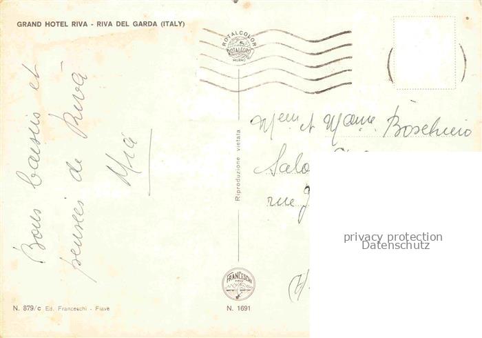 74043299 old postcard Riva del Garda Riva sul Garda IT Grand Hotel Riva postalisch gelaufen Erhaltung siehe scans [WerneD78] KatCode: 11240