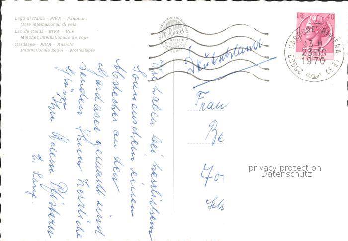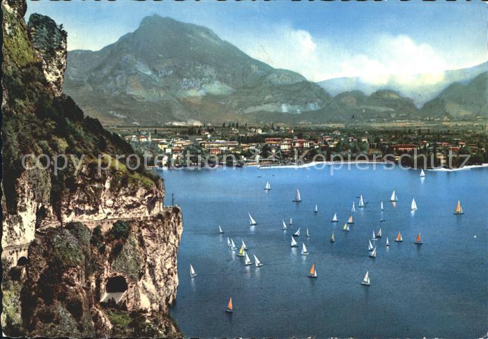 old postcard Riva del Garda Segelboote Felsen postalisch gelaufen Erhaltung siehe scans