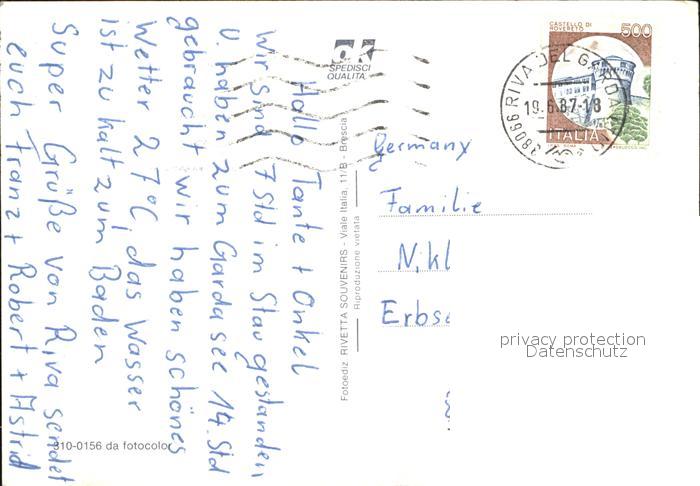 old postcard Riva del Garda Strand Hafen postalisch gelaufen Erhaltung siehe scans