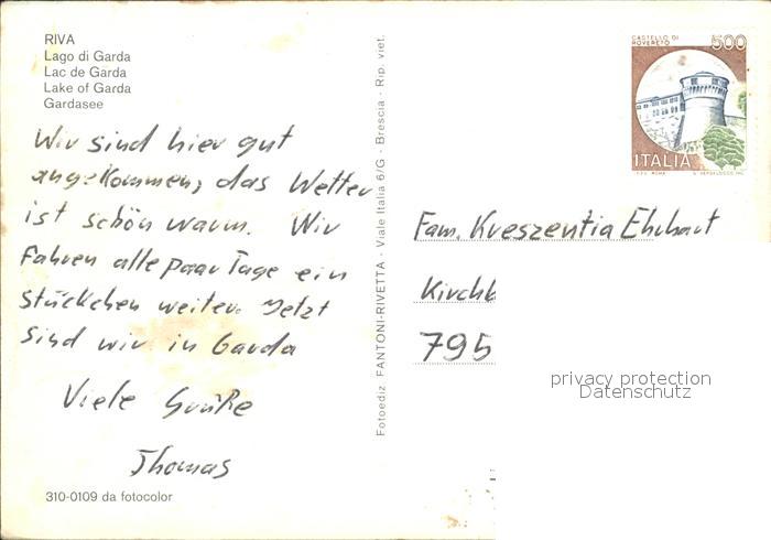 Riva del Garda Turm Panorama Gardasee Segeln Catamaran Uferpromenade postalisch nicht gelaufen Erhaltung siehe scans