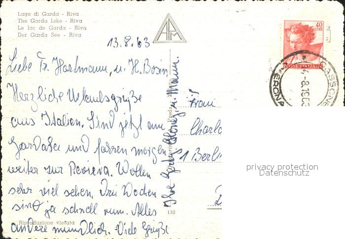 old postcard Riva del Garda Uferpartie am Gardasee postalisch gelaufen Erhaltung siehe scans