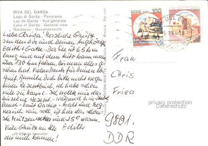 old postcard Riva del Garda Uferpartie am Gardasee Kirche postalisch gelaufen Erhaltung siehe scans