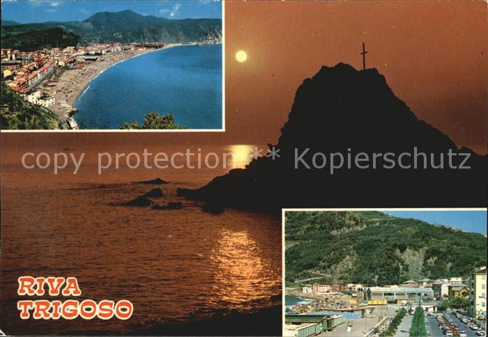 old postcard Riva Trigoso Panorama Felsen Strand Promenade postalisch gelaufen Erhaltung siehe scans