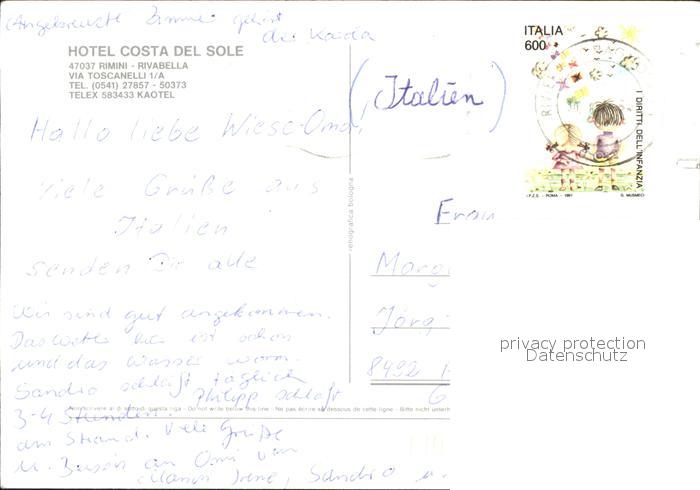 old postcard Rivabella Rimini Hotel Costa del Sole postalisch gelaufen