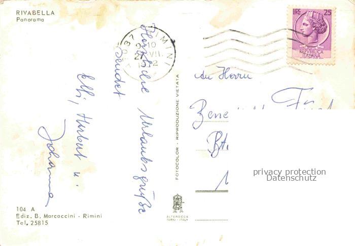 74005988 old postcard Rivabella Rimini IT Panorama postalisch gelaufen Erhaltung siehe scans [WerneD78] KatCode: 11240