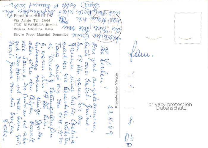 old postcard Rivabella Rimini Pension Britta postalisch gelaufen Erhaltung siehe scans
