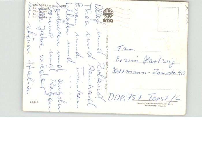old postcard Rivabella Rimini Spiaggia Strand postalisch gelaufen