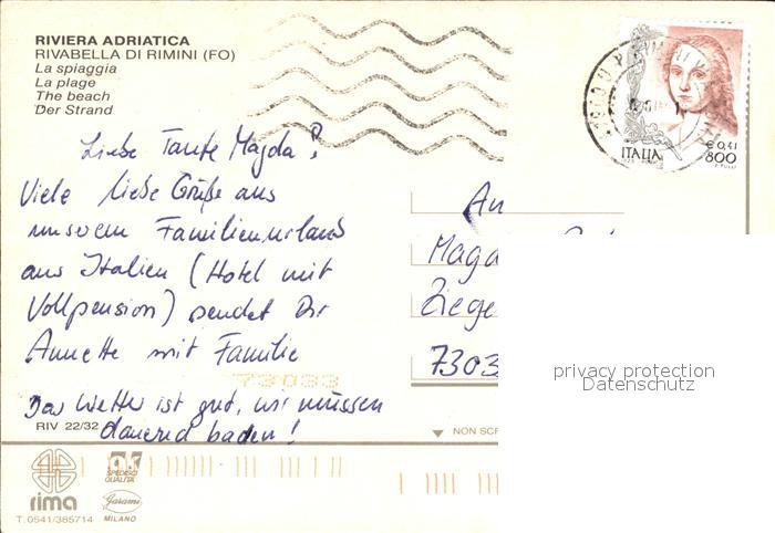 old postcard Rivabella Rimini Strand postalisch gelaufen Erhaltung siehe scans