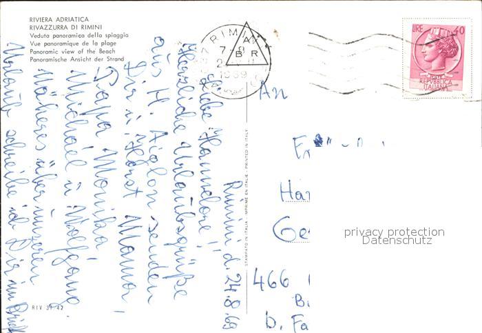 old postcard Rivazurra Rimini Strand postalisch gelaufen Erhaltung siehe scans